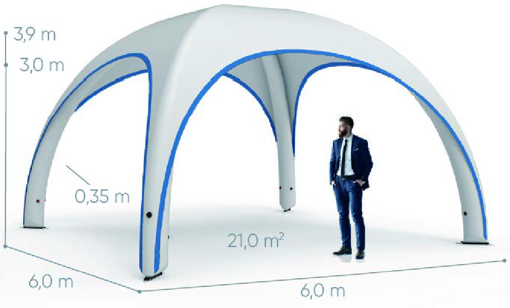 今までのテントは金属でできた重い骨組みを組み合わせ、幕を取付…という手間がかかり、かつ印象もあまりに慣れ親しんだものになってしまいました。