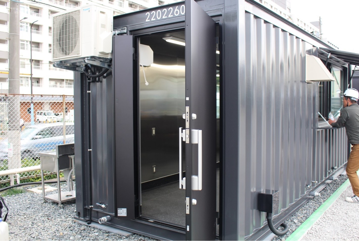 商品詳細 キッチンコンテナ 品番 6229401001 レンタル価格(税込み) 2泊3日 要問合せ カテゴリ キッチンコンテナ|コンテナ|テント・周辺備品|テント一覧 サイズ W2253×D5868 数量 カートに入れる この商品について問い合わせる キッチンコンテナ ・キッチンとして屋外イベントやまちづくり事業の利用に最適 ・黒色の統一感のある見た目 ・内壁はステンレスのため油に強く衛生的で清潔感のある見た目 ・床は防滑シートのため、水にぬれても滑りにくい安心設計 ・仮店舗としてのご利用に最適 図面 関連商品 冷凍/冷蔵コンテナ リーファ 男子トイレコンテナ 女子トイレコンテナ 事務所コンテナ SBT事務所N-CON1F