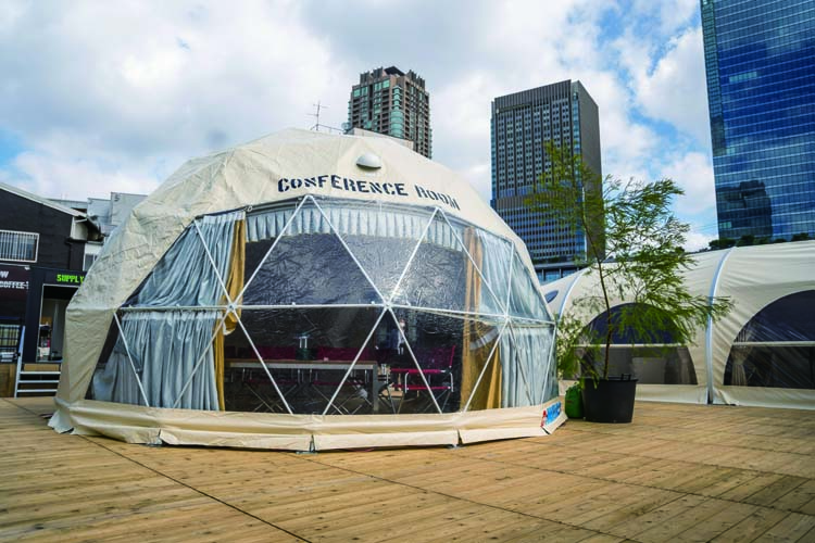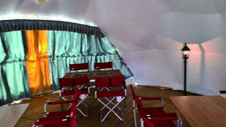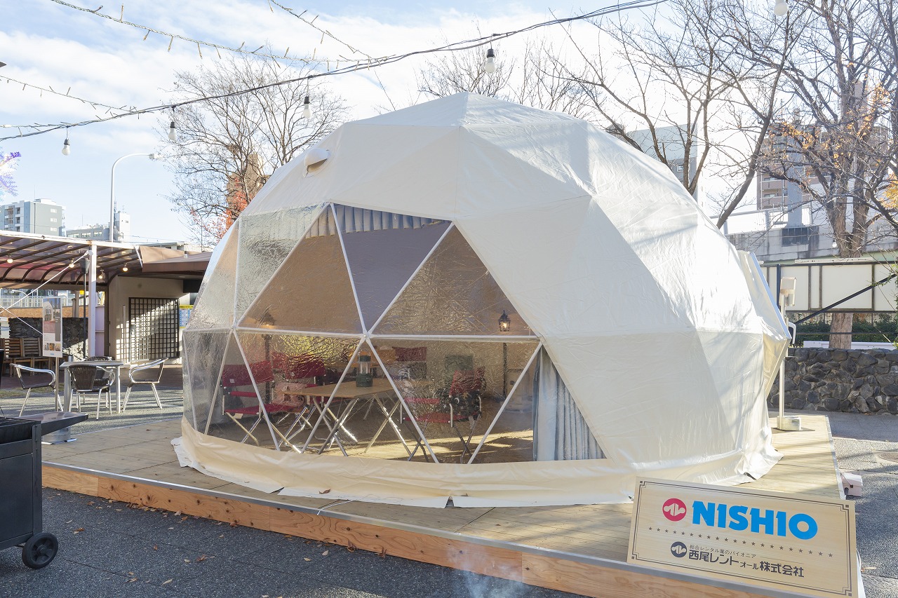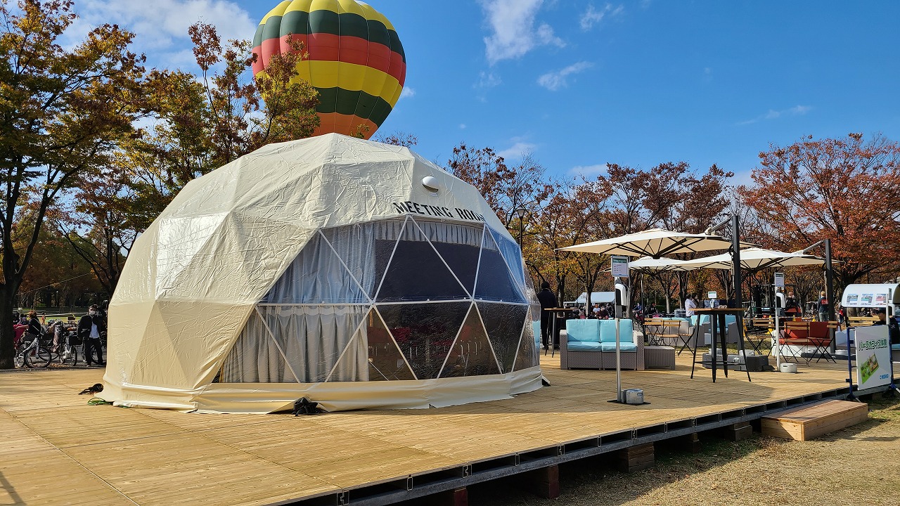 商品詳細 6m ドームテント LIRI 品番 6020681000 レンタル価格(税込み) 2泊3日 242,000円 カテゴリ 6m ドームテント LIRI|テント・周辺備品|テント一覧 数量 カートに入れる この商品について問い合わせる ■インパクトのある目新しい球体のテントです。 ■円形構造で尚且つ大きな透明幕の窓があるので室内は非常に開放感あります。 ■エントランスの扉は木製、外幕は黄砂色で自然に溶け込んだイメージを醸し出す。 ■内装は外幕素材とは違う、コットン素材で柔らかい内幕をクロス張り。 ■外幕と内幕の2重層で遮音性、断熱性効果があります。 ■大窓にかかるカーテンはスタイリッシュさを映し出し、高級感を与えゆったりと寛げます。 図面 施工事例