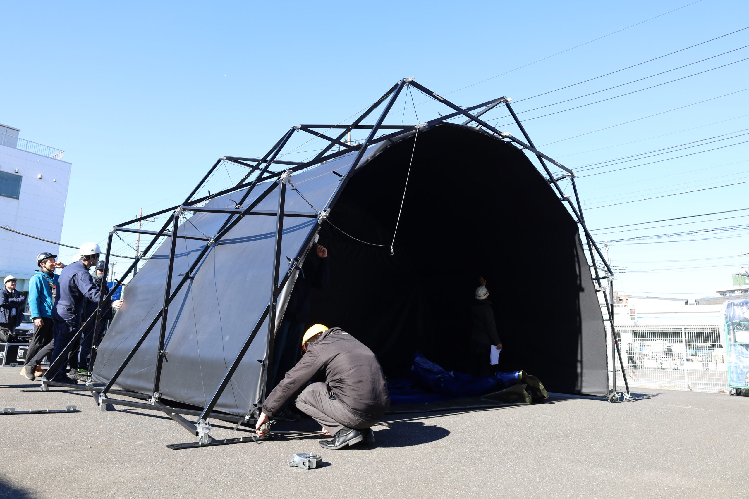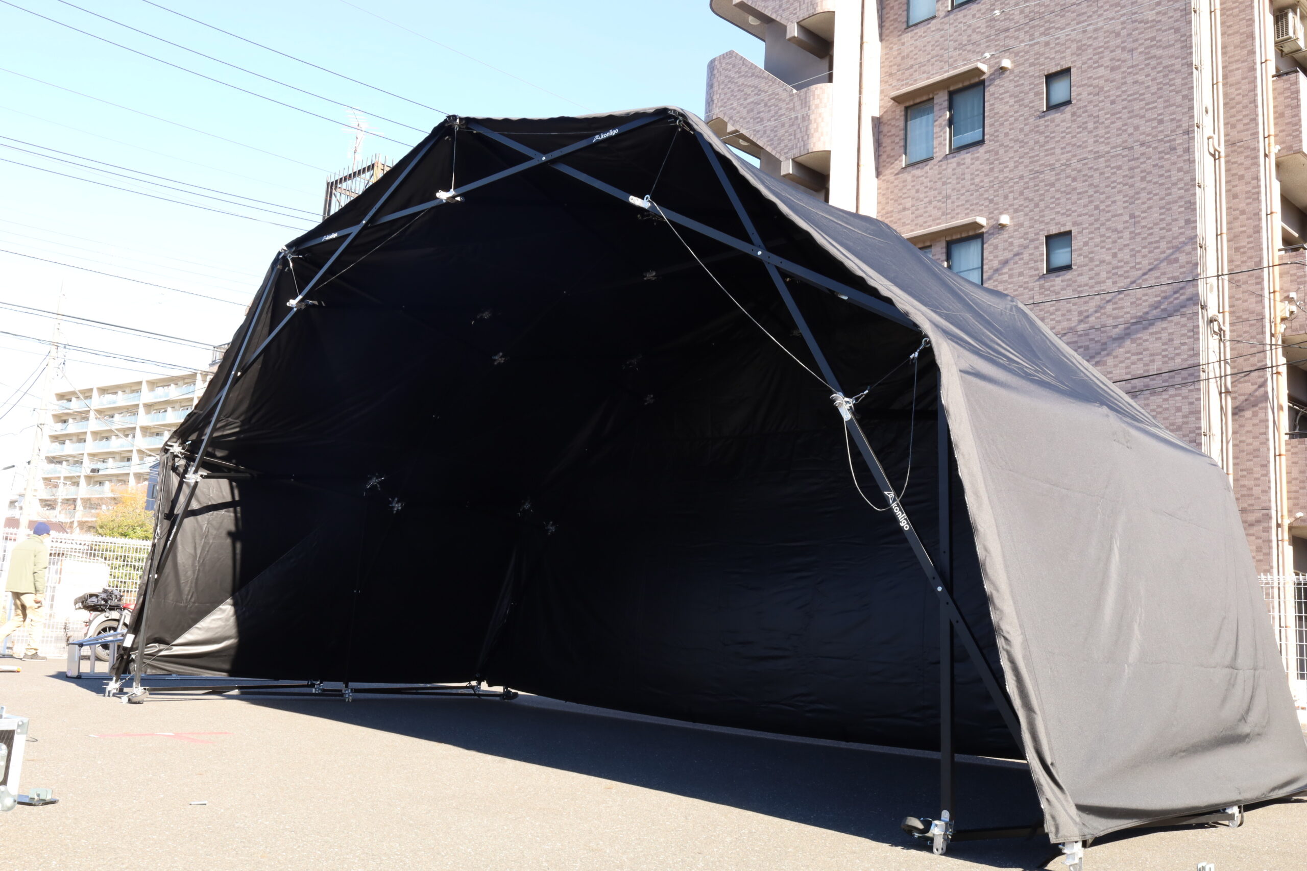 ●骨組みが蛇腹状になっており広げるだけで設営が可能です。