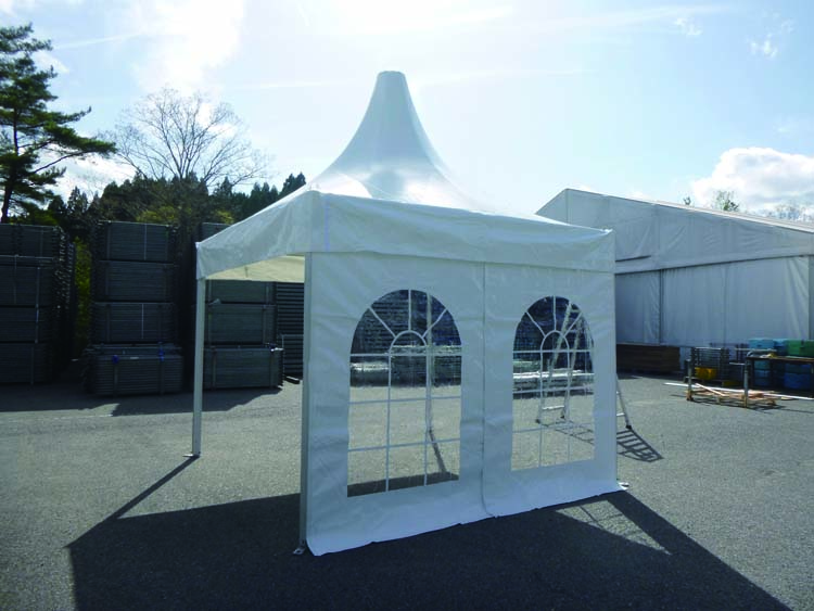 商品詳細 3m×3mテント ローダー 品番 76020310010 レンタル価格(税込み) 2泊3日 110,000円 カテゴリ 3m×3mテント ローダー|中型テント|テント・周辺備品 サイズ 3m×3m 軒高 2334mm(フレームの高さ) 屋根高 4070mm 数量 カートに入れる この商品について問い合わせる ●ヨーロピアンテイストの特徴のあるデザインで、屋外でのパーティーやウエディングに最適です。 ●バザー等のイベントでの集客力アップが望めます。 ※短期間でのご使用を目的とした仮設テントです。必ずウエイト、杭等にて風対策をお願いします。 図面
