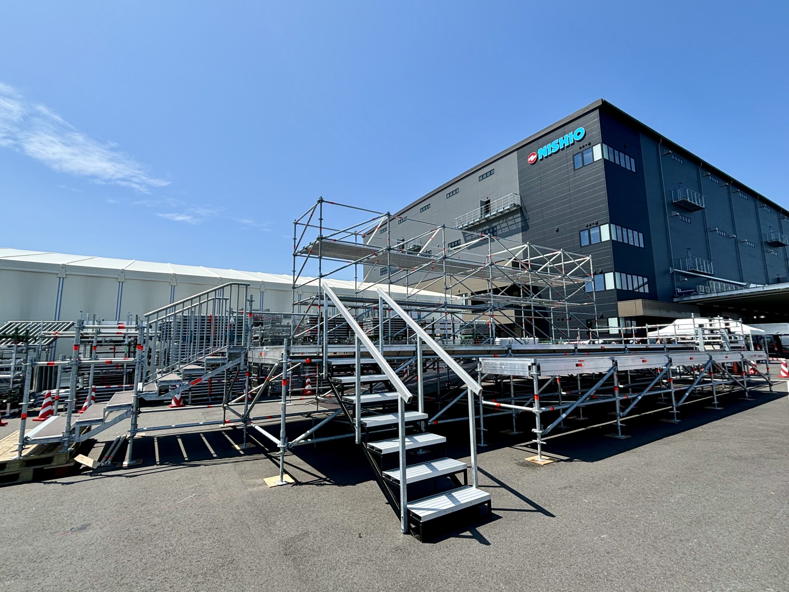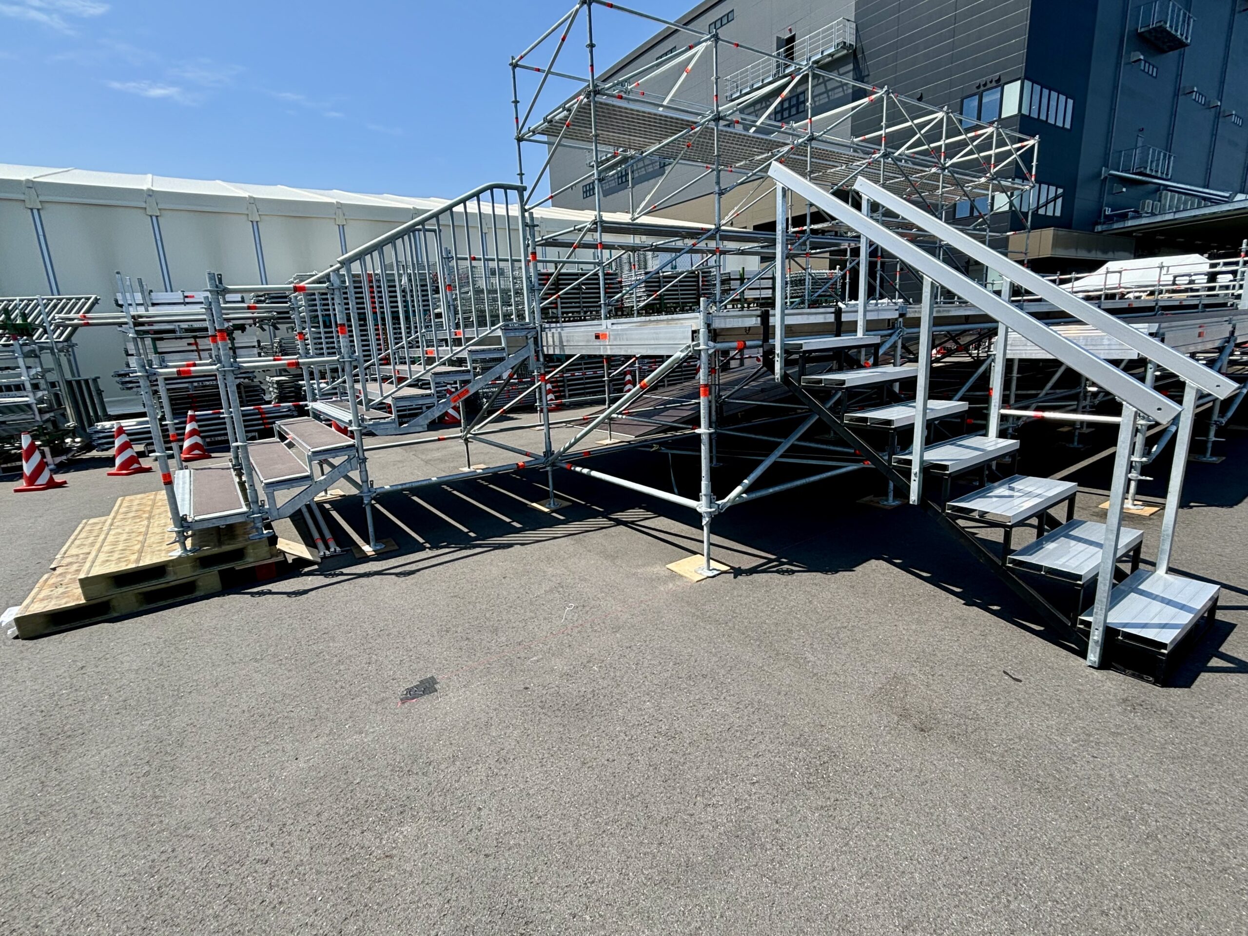 レイヤーステージは建築用仮設資材として使われるものをステージや音響・照明用タワー等のイベント用途に軽量/改良した商材です。