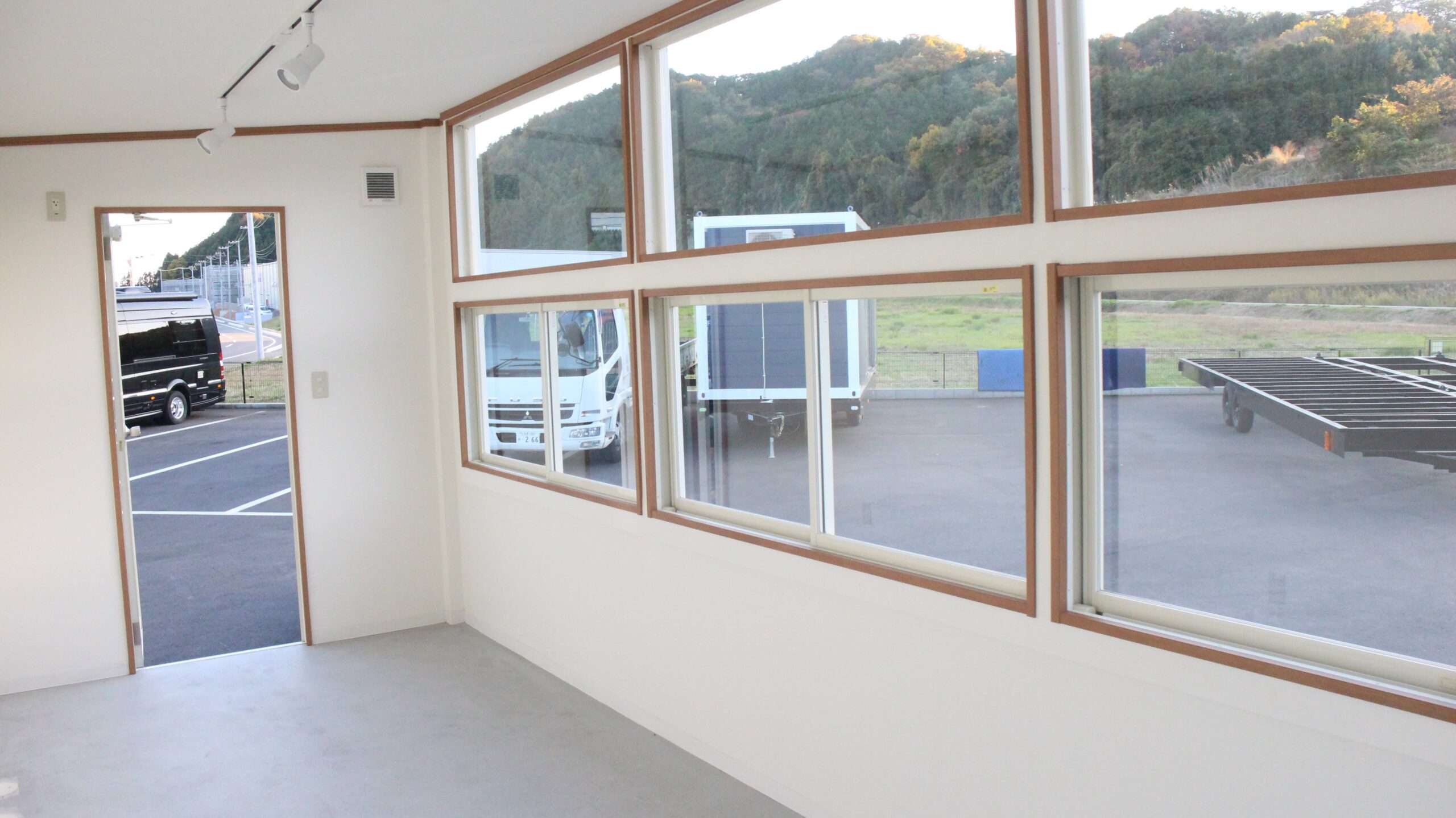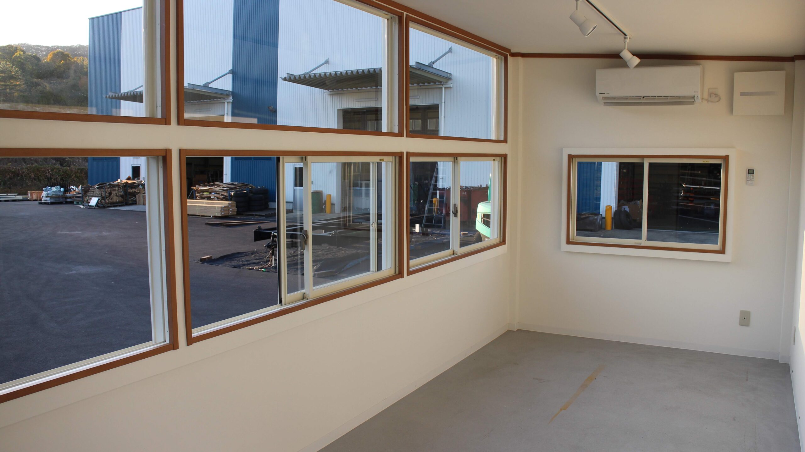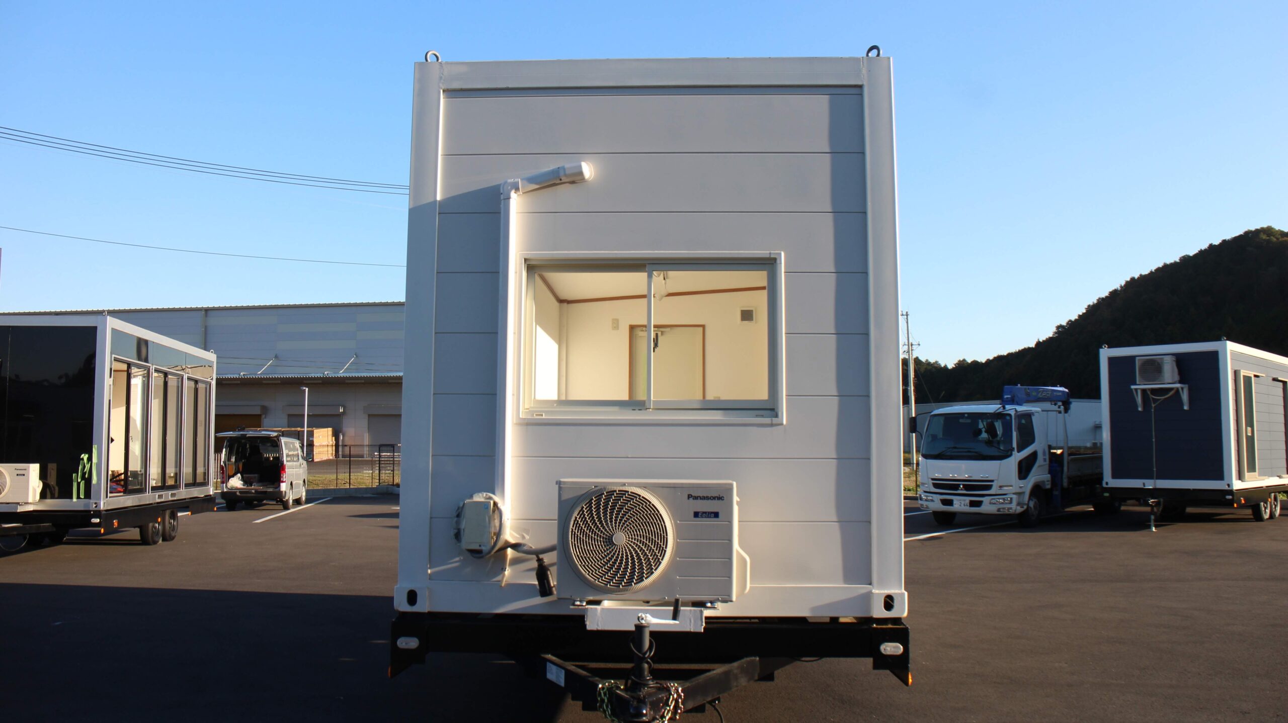 ・トレーラーハウスの片面側が窓3ヵ所構成