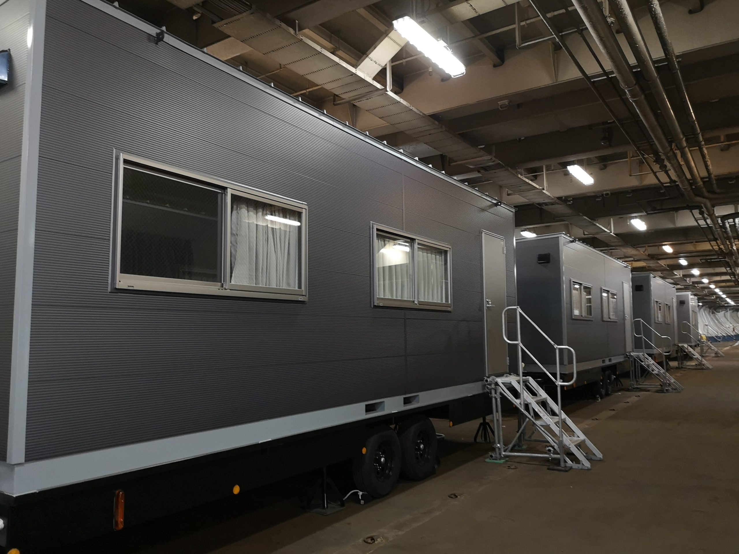 ・仮事務所、休憩所、仮眠室、出動待機場所、仮設警備拠点、スタッフ控室、演者楽屋、イベント管理事務局
