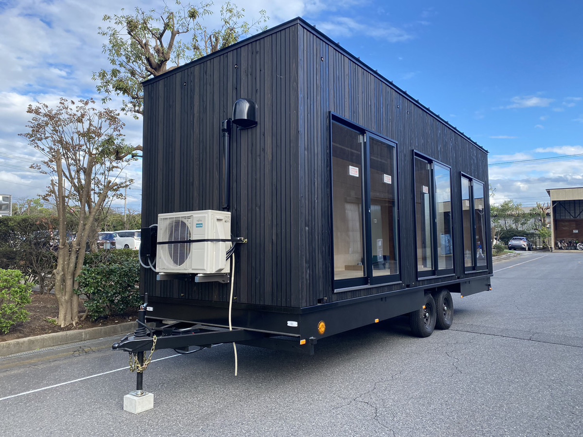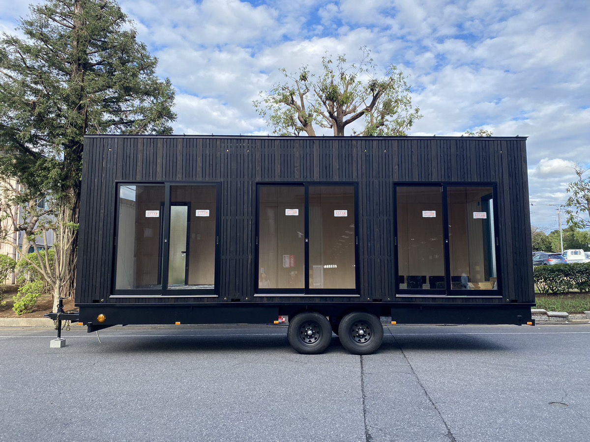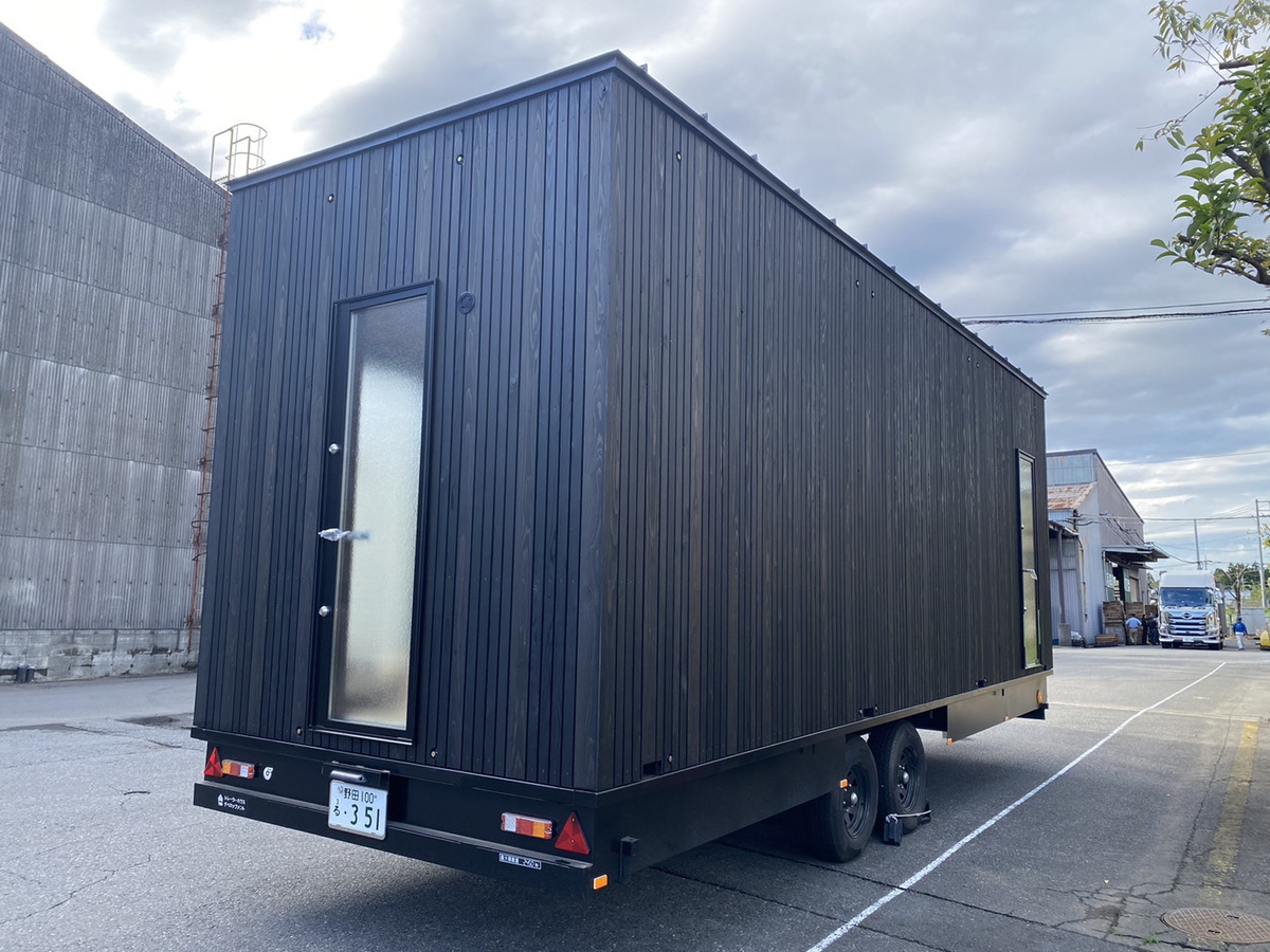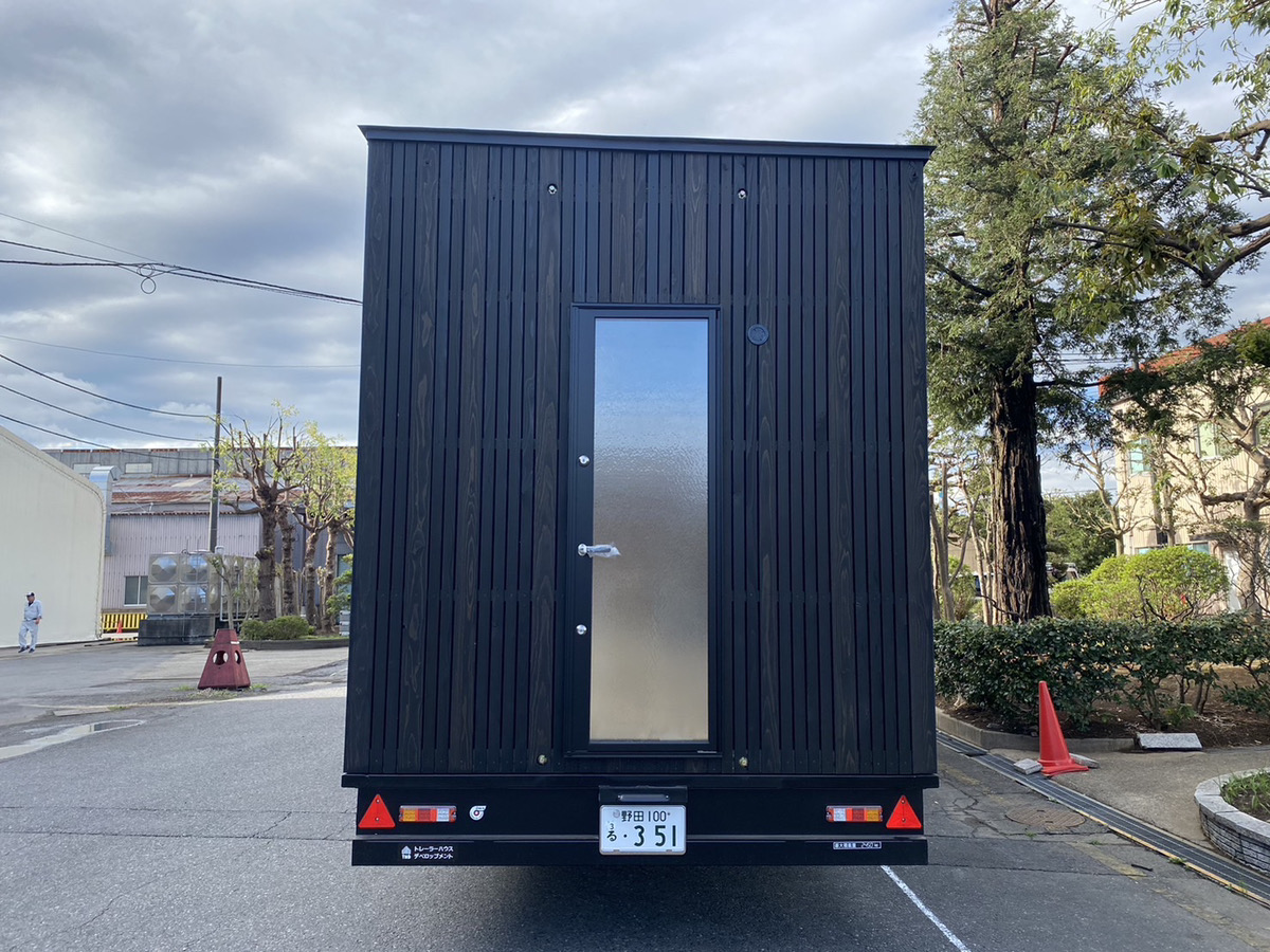 ・トレーラー片面が3枚ガラス扉の開放型トレーラーハウス