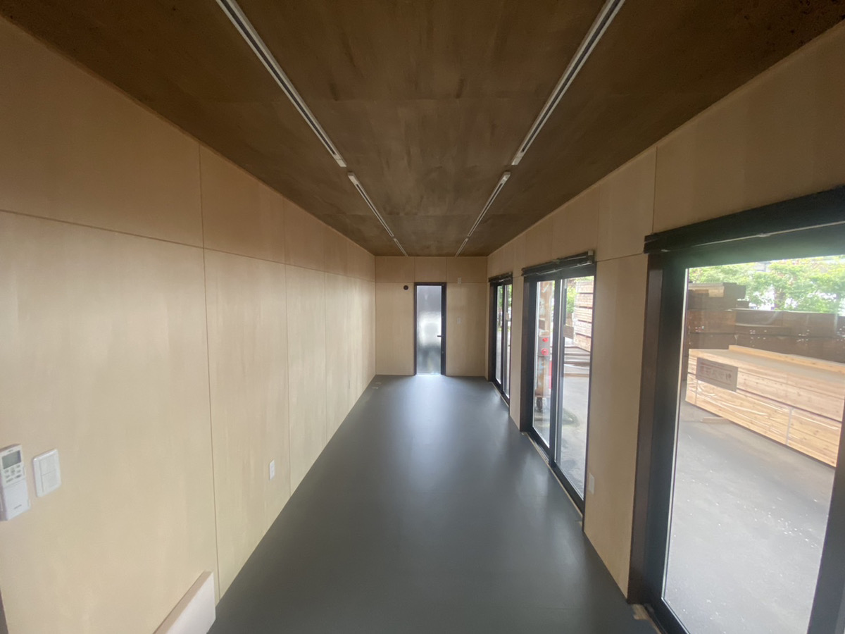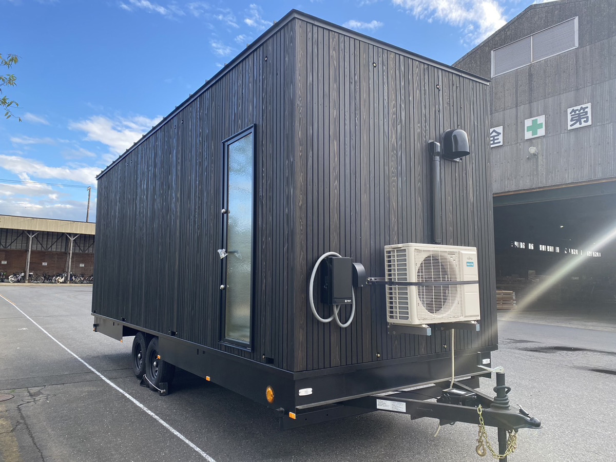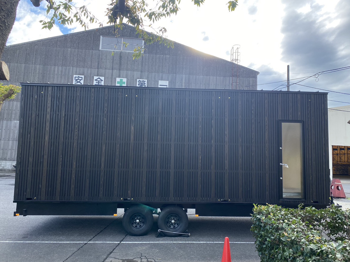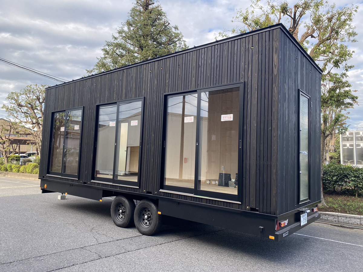 ・トレーラー片面が3枚ガラス扉の開放型トレーラーハウス