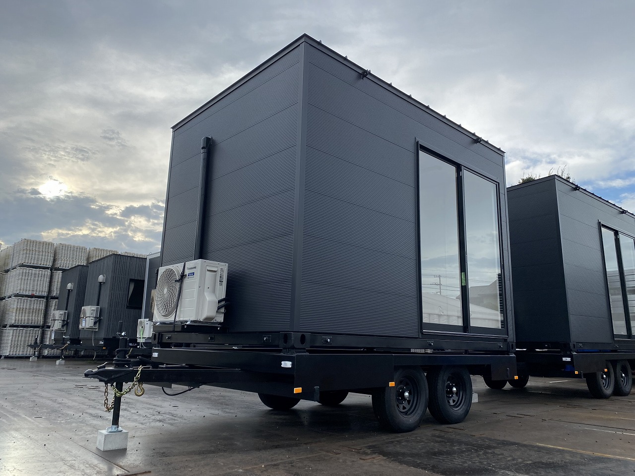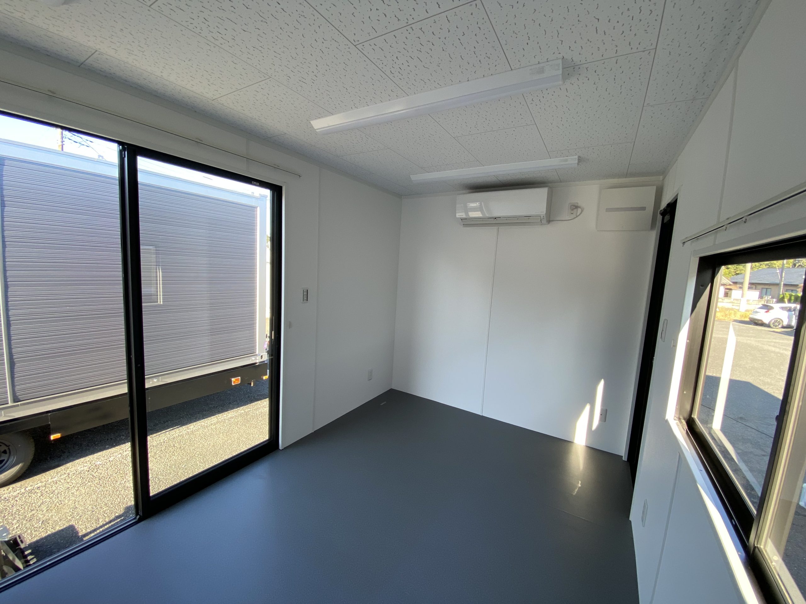 ・トレーラーハウス内の設備を搭載したまま走行しますので、トレーラーハウス停車後、すぐに使用可能!(電源は電気工事が必要になります)